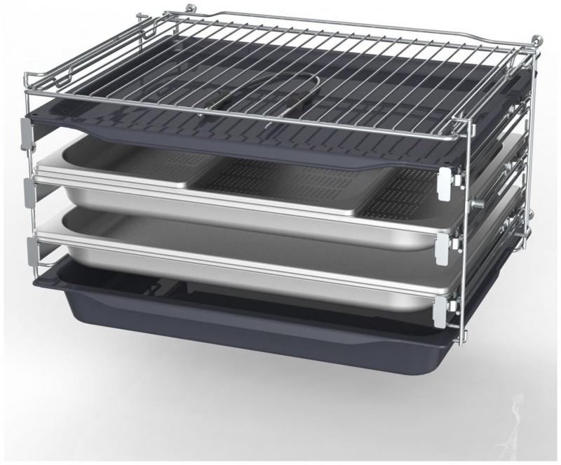 Электрический духовой шкаф Asko Elements OCS8678G из серии Elements обладает объемом 75 л, классом энергоэффективности A+ и потребляемой мощностью 3400 Вт. Оснащен сенсорным управлением, цветным дисплеем, системой охлаждения и пиролитической очисткой. Включает 160 автоматических программ, 22 режима работы, термощуп, гриль, таймер и отсроченный старт. Дверца откидная с 4 стеклами, максимальная температура нагрева 230 °C. Внутреннее покрытие выполнено из эмали, цвет антрацит. Телескопические направляющие установлены на трех уровнях. Размеры: 595 х 595 х 546 мм, вес 51.100 кг.