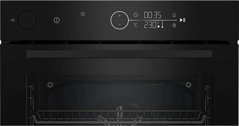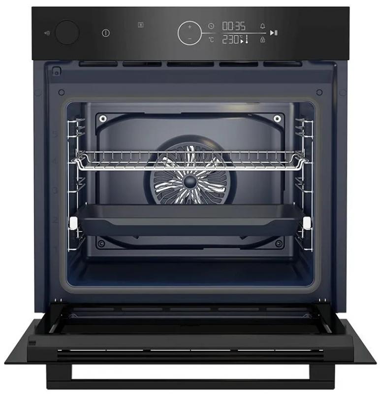 Электрический духовой шкаф BEKO BCBIS17400KSBS электрический, 45 см. Управление электронное, ЖК-экран. Таймер с отключением программы, отложенный старт, звуковой сигнал, блокировка от детей, термостат, освещение. Дверца откидная, три стекла. Количество режимов работы 15, гриль электрический. Направляющие проволочные и телескопические, одна пара. Комплектация включает стандартный противень и решетку. Мощность и температура нагрева обеспечивают равномерное приготовление. Класс энергопотребления A+. Цвет черный. Ширина 59.4см Глубина 56.7см Высота 59.5см Вес 33.85кг.
