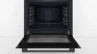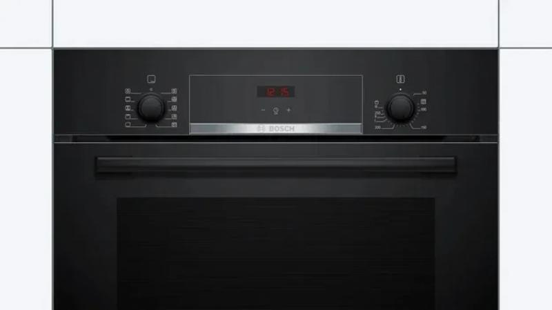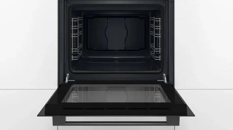 Духовой шкаф электрический Bosch HBF514BB1T. Электрический духовой шкаф имеет максимальную температуру 275 *С. Внутреннее покрытие выполнено из эмали. Модель оснащена встроенными часами и стеклянной панелью управления. Имеется индикация включения времени приготовления и режима работы. Звуковой сигнал присутствует. Обеспечена защита от детей. Цвет черный. Класс энергоэффективности A+. Габариты 595x548x548 мм вес 33 кг.