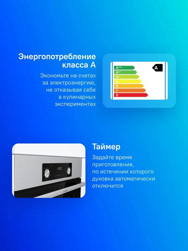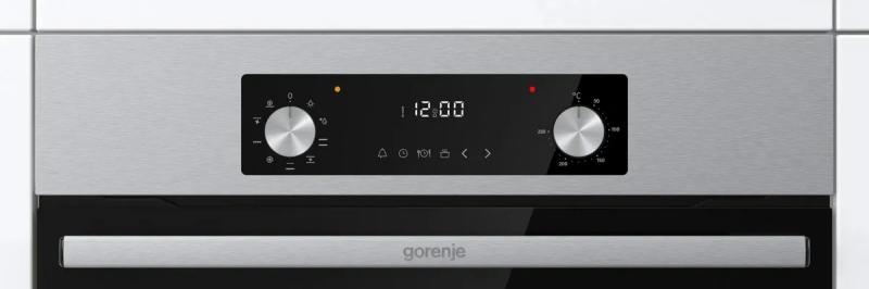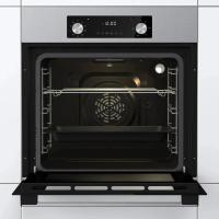 Электрическая духовка GORENJE BO6737E02NX с независимым управлением оснащена поворотными и сенсорными утапливаемыми переключателями. Мощность подключения составляет 2900 Вт, класс энергоэффективности A. Объем камеры 73 литра, максимальная температура нагрева 250 °С. Внутреннее покрытие выполнено из эмали легкой очистки, предусмотрена система очистки паром. Имеется конвекция, дисплей, электронный таймер, вентилятор охлаждения. Духовка многофункциональная, содержит 9 программ. Дверца открывается вниз, имеет полностью стеклянную внутреннюю поверхность и состоит из двух стекол. Присутствует освещение с одной лампой подсветки, звуковая индикация и защитное отключение. Длина кабеля 1 метр. Размеры изделия 59.5 х 53 х 59.5 см, размеры ниши для встраивания 56 x 58 x 60 см. Вес нетто составляет 30 кг.