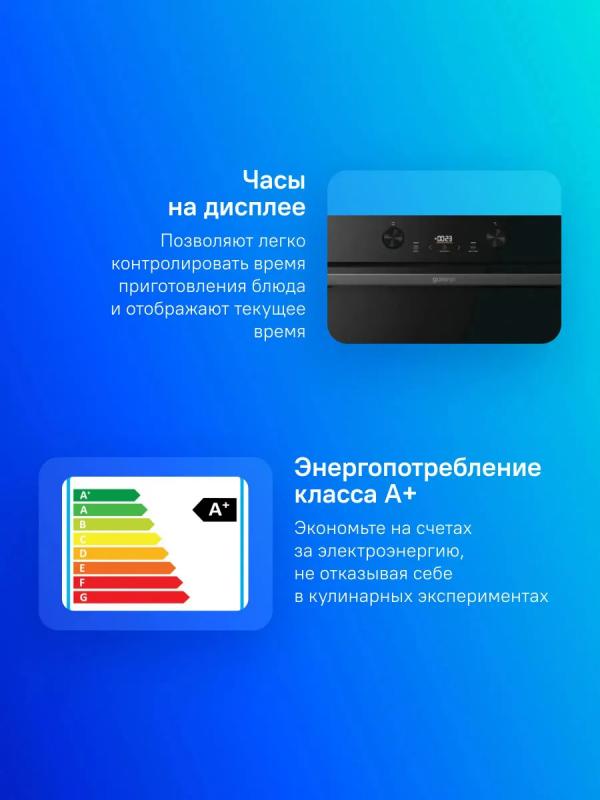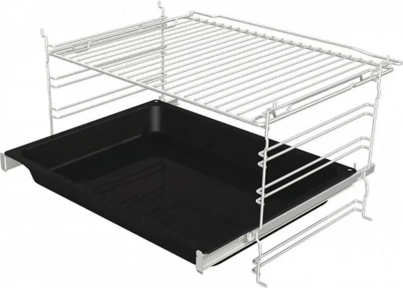 Электрическая духовка GORENJE BOS6737E05DBG с независимым управлением оснащена поворотными и сенсорными утапливаемыми переключателями. Мощность подключения составляет 3500 Вт, класс энергоэффективности A+. Объем камеры 77 литров, максимальная температура нагрева 300 °С. Внутреннее покрытие выполнено из пиролитической эмали, предусмотрена очистка паром. Имеется конвекция и электрический гриль. Дисплей, часы и электронный таймер встроены. Многофункциональная духовка предлагает 9 программ приготовления. В комплекте телескопические направляющие одноуровневого типа. Дверца открывается вниз, полностью стеклянная внутренняя поверхность состоит из двух стекол. Присутствует подсветка с одной лампой, защитное отключение и блокировка от детей. Длина кабеля 1.32 м. Размеры изделия 59.5х56.4х59.5 см, размеры ниши для встраивания 56x55x59 см. Вес 28.2 кг.