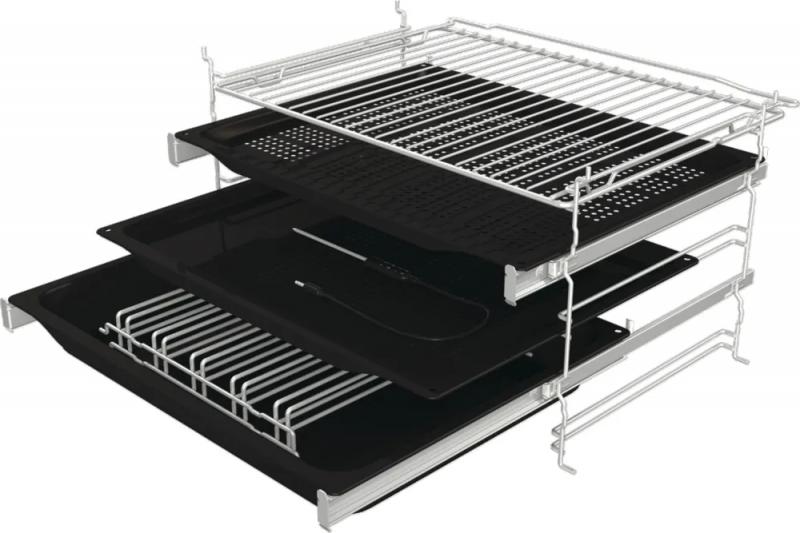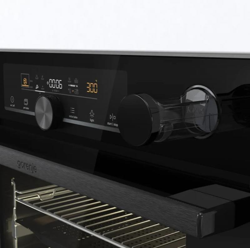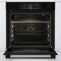 Встраиваемая электрическая духовка GORENJE BPSA6747A08BG с независимым управлением оснащена поворотными и сенсорными утапливаемыми переключателями. Мощность подключения составляет 3500 Вт, класс энергоэффективности A+. Объем камеры 77 литров, максимальная температура нагрева 300 °C. Внутреннее покрытие выполнено из пиролитической эмали, есть функция пиролитической очистки. Имеется конвекция и электрический гриль мощностью 2300 Вт. Духовка предлагает 23 программы приготовления, включая режим на пару с емкостью для воды объемом 0.13 л. Оснащена дисплеем, электронным таймером, системой защитного отключения и вентилятором охлаждения. Телескопические направляющие двухуровневого типа обеспечивают удобство использования. Дверца открывается вниз, имеет полностью стеклянную внутреннюю поверхность и состоит из четырех стекол. Подсветка представлена одной лампой. Цвет черный. Размеры (ШхГхВ): 59.5 х 56.4 х 59.5 см, размеры ниши для встраивания (ШхГхВ): 56 x 55 x 59 см. Вес 35.2 кг.