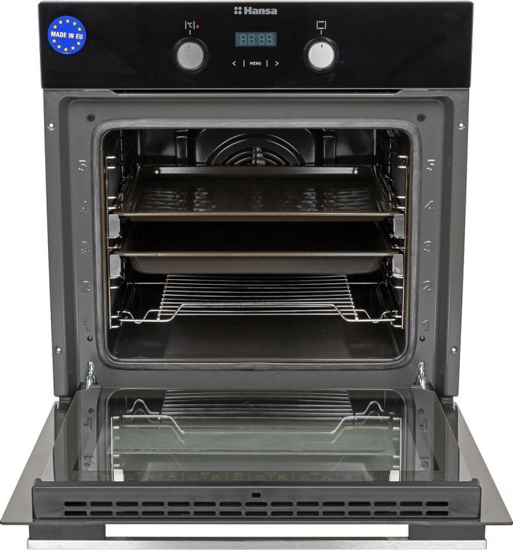 Электрическая духовка HANSA BOES69475 с независимым типом управления оснащена поворотными и сенсорными переключателями. Мощность подключения составляет 3100 Вт, класс энергоэффективности A. Объем камеры 65 литров с эмалью легкой очистки и гидролизной системой очистки. Имеется конвекция и электрический гриль. Дисплей, часы и электронный таймер встроены. Присутствует электронный программатор с десятью режимами работы: комбинированные варианты верхнего и нижнего нагревателей с вентилятором и грилем, размораживание, быстрый разогрев, специальные программы для пиццы и горячего воздуха. Автоматический быстрый разогрев и телескопические направляющие в комплекте. Дверца открывается вниз, состоит из трех стекол. Встроенное освещение и звуковая индикация. Цвет черный. Размеры изделия 59.5 х 57.5 х 59.5 см, размеры ниши для встраивания 56 x 56 x 60 см.