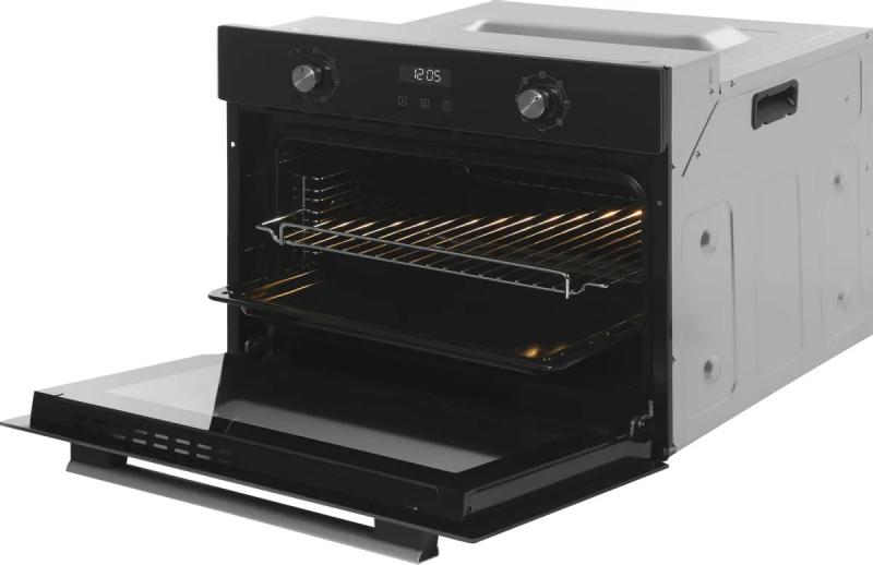 Электрическая духовка HYUNDAI HEO 64512 BG с независимым управлением оснащена поворотными переключателями и имеет мощность подключения 2200 Вт. Класс энергоэффективности A. Объем камеры составляет 45 литров. Максимальная температура нагрева достигает 250 °C. Внутреннее покрытие выполнено из эмали Easyclean, обеспечивающей легкую очистку. Имеется конвекция и гриль. Духовка оборудована дисплеем, таймером и электронным программатором с семью режимами работы. Присутствует функция поддержания температуры и вентилятор охлаждения. Дверца открывается вниз и имеет полностью стеклянную внутреннюю поверхность с двойным остеклением. Максимальная температура поверхности дверцы составляет 35 °C. Освещение галогенное, мощностью 0.6 Вт. Есть звуковая индикация, защитное отключение и защита от детей. Подключение осуществляется через кабель с вилкой длиной 1.2 м. Цвет черный/серебристый. Размеры 59.5 х 56.5 х 45 см, размеры ниши для встраивания 57 x 56 x 45 см. Вес 23.3 кг.