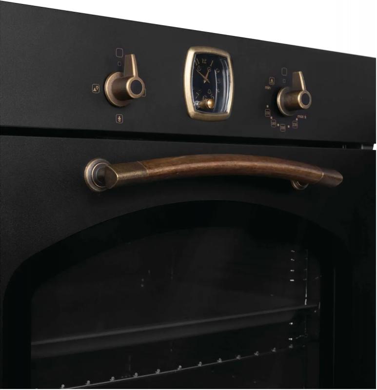Газовая духовка KORTING OGG741CRN с независимым управлением оснащена поворотными переключателями и имеет класс энергоэффективности А. Объем камеры составляет 67 литров, максимальная температура нагрева достигает 250 °С. Внутреннее покрытие выполнено из эмали легкой очистки. Модель оборудована конвекцией и газовым грилем. Имеются часы и таймер механического типа. Присутствует вентилятор охлаждения и телескопические направляющие. Дверца открывается вниз и содержит три стекла. Освещение галогеновое, мощность лампы 25 Вт. В комплект входят противень для выпечки, глубокий противень и хромированная решетка. Размеры прибора составляют 59.5 x 58 x 59.5 см, размеры ниши для встраивания 56 x 56 x 59.5 см. Цвет черный.
