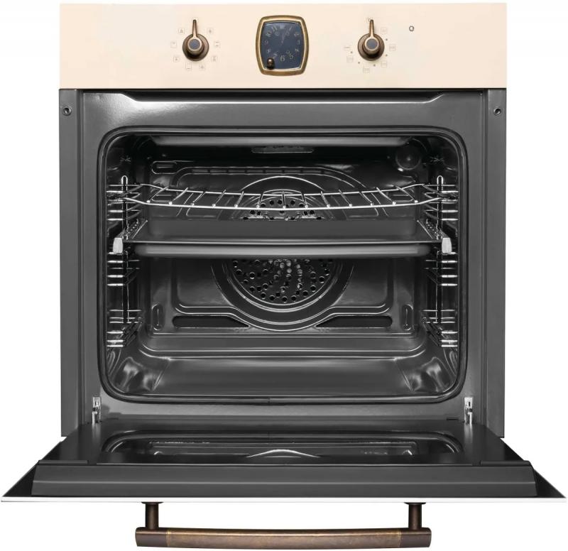 Электрический духовой шкаф Korting OKB 481 CRB имеет объем 60 литров и класс энергоэффективности A. Оснащен механическим управлением с таймером и 8 режимами работы, включая конвекцию, гриль и турбогриль. Дверца с трехслойным стеклом оснащена доводчиком и блокировкой. Внутреннее покрытие выполнено из эмалированного металла, предусмотрена каталитическая очистка. Комплектуется металлической решеткой, плоским и глубоким противнями, решеткой для гриля. Имеется защита от детей, вентилятор охлаждения корпуса и галогеновое освещение. Мощность составляет 3200 Вт, длина сетевого кабеля 1.35 м. Габариты шкафа 595x595x548 мм при весе 34.2 кг. Производство Турция, гарантия 1 год.