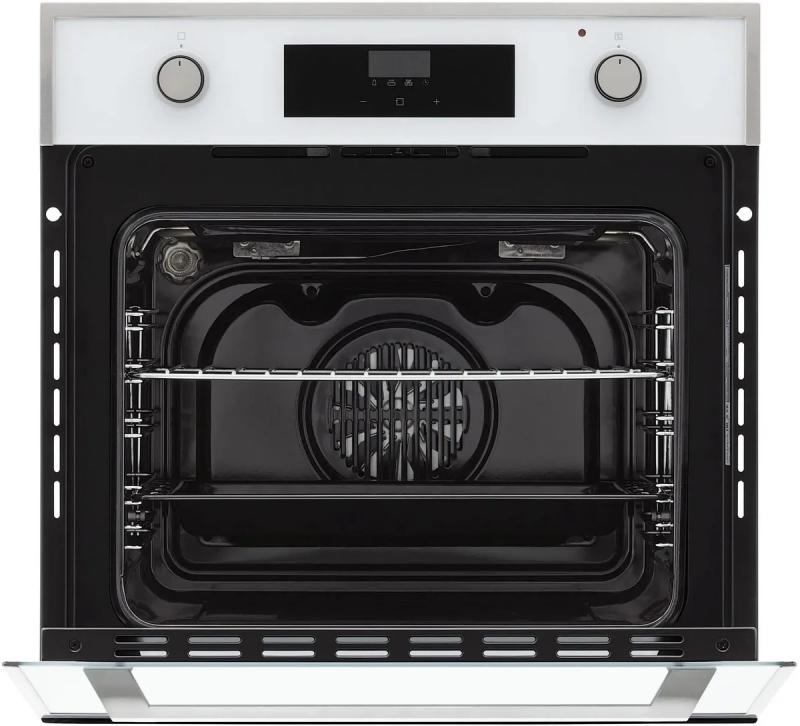 Электрическая духовка KRONA Adriano 60 Wh G2 имеет независимое управление с поворотными и сенсорными утапливаемыми переключателями. Мощность подключения составляет 3600 Вт, класс энергоэффективности A. Объем камеры 56 литров, максимальная температура нагрева 260 °С. Внутреннее покрытие выполнено из эмали легкой очистки, предусмотрена традиционная система очистки. Имеется конвекция и электрический гриль. Духовка оснащена дисплеем, электронным таймером и механическими часами. Предусмотрено 9 программ работы. Дверца открывается вниз, состоит из трех стекол, внутренняя поверхность полностью стеклянная. Подсветка галогенная, мощностью 25 Вт. Имеется звуковая индикация и защитное отключение. Подключение осуществляется кабелем без вилки. Размеры прибора 59.4 х 52 х 59.4 см, размеры ниши для встраивания 55.8 x 55 x 60 см. Цвет белый.
