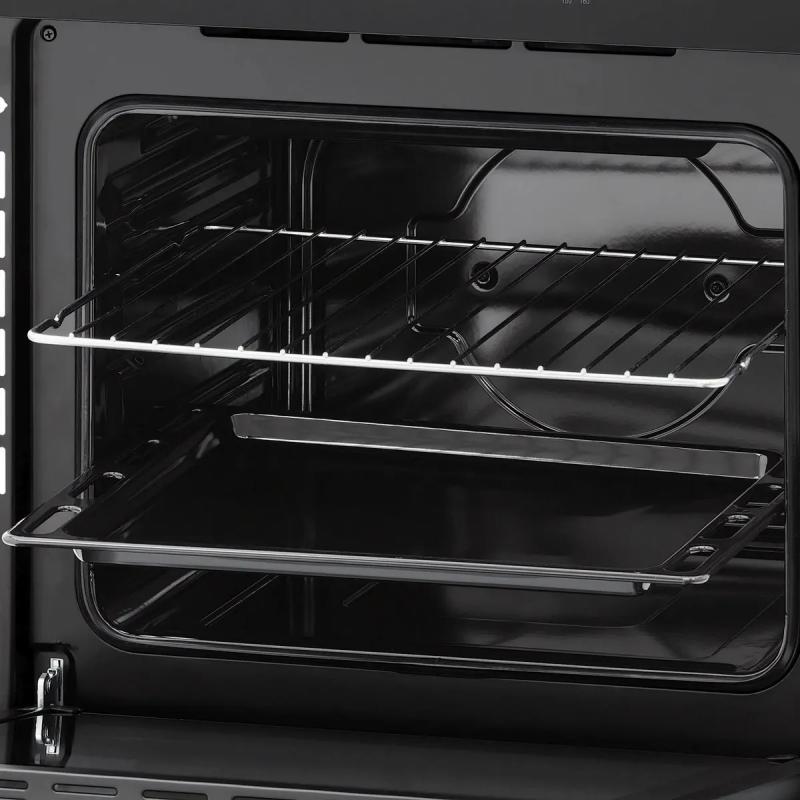 Электрическая духовка KRONA Essenza 60 Bl G2 имеет независимое управление с поворотными переключателями. Мощность подключения составляет 2500 Вт, класс энергоэффективности A. Объем камеры 56 литров, максимальная температура нагрева 260 °С. Внутреннее покрытие выполнено из эмали легкой очистки. Оснащена электрическим грилем мощностью 1300 Вт. Имеется механический таймер и три программы приготовления: верхний и нижний нагрев, нижний нагрев, гриль. Дверца открывается вниз, состоит из трех стекол, внутренняя поверхность полностью стеклянная. Подсветка галогенная, мощность лампы 25 Вт. Подключение осуществляется кабелем без вилки. Цвет черный. Габариты (ШхГхВ): 59.4 х 52 х 59.4 см, размеры ниши для встраивания (ШхГхВ): 55.8 x 55 x 60 см.