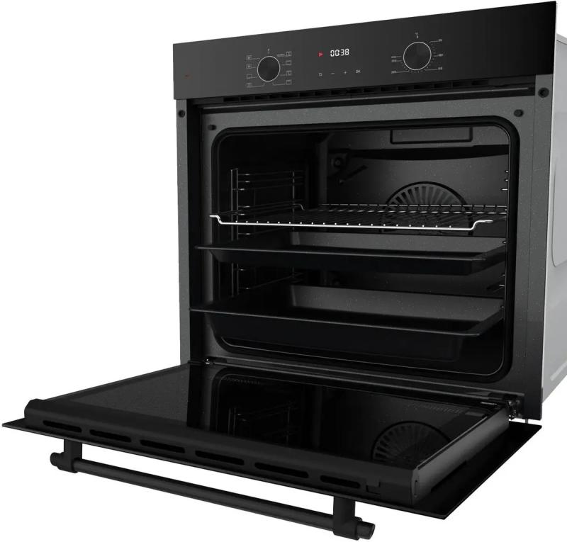 Электрическая духовка LEX EDP 680 BBL MAX с независимым управлением оснащена поворотными и сенсорными утапливаемыми переключателями. Мощность подключения составляет 2509 Вт, класс энергоэффективности A. Объем камеры 78 литров, максимальная температура нагрева 250 °C. Внутреннее покрытие выполнено из эмали легкой очистки, предусмотрена традиционная система очистки. Имеется конвекция и электрический гриль. Духовка оборудована дисплеем, механическим таймером и часами. Поддерживает различные режимы работы: гриль, гриль с конвекцией, нижний нагрев, подсветка, размораживание, традиционный нагрев, малый гриль с конвекцией и традиционный нагрев с конвекцией FryArt. Дверца открывается вниз, имеет полностью стеклянную внутреннюю поверхность и состоит из двух стекол. Освещение обеспечивается одной лампой подсветки, присутствует звуковая индикация. Цвет черный. Габариты (ШхГхВ): 59.5 х 54.7 х 59.5 см, размеры ниши для встраивания (ШхГхВ): 56 x 55 x 60 см, вес 28.5 кг.