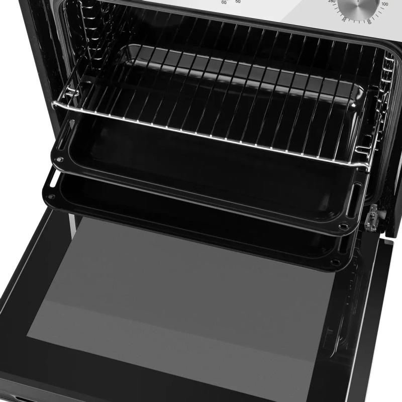 Электрический духовой шкаф MAUNFELD FEOF7871W, 45 см. Мощность подключения составляет 2400 Вт, максимальная температура нагрева 250 °С. Управление осуществляется поворотными переключателями. Оснащен таймером механического типа и системой гидролизной очистки. Внутреннее покрытие выполнено из эмали легкой очистки. Имеет 7 программ работы, включая конвекцию и размораживание. Дверца открывается вниз, содержит 3 стекла и 1 лампу подсветки. Особенности конструкции включают полностью стеклянную внутреннюю поверхность дверцы и утапливаемые переключатели. Звуковая индикация оповещает о завершении работы. Цвет белый. Класс энергоэффективности A. Размеры 59.5х57х59.5 см, вес 28.22 кг.
