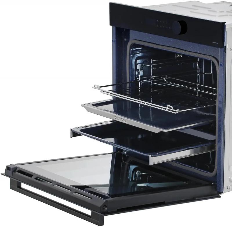 Духовой шкаф SAMSUNG NV7B5645TAK/WT оснащен электрическим типом нагрева. Имеет поворотные и сенсорные переключатели. Объем составляет 76 л, максимальная температура достигает 250 °С. Предусмотрена каталитическая очистка и электрический гриль. Поддерживает режимы гриля и конвекции. Включает функции отсрочки старта, таймер и часы. Таймер электронный, присутствует многофункциональность. Направляющие телескопические, 1-уровневые. Дверца открывается вниз. Освещение духовки галогенное, мощность ламп 40 Вт. Защита от детей обеспечена. Индикация режима работы присутствует. Конструкция включает дисплей, полностью стеклянную внутреннюю поверхность дверцы и телескопические направляющие. Размеры (ШхГхВ) 59.5 х 57 х 59.6 см. Размеры ниши для встраивания (ШхГхВ) 56 x 56 x 60 см.
