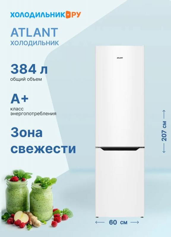 Холодильник ATLANT 6626-109 оснащён двумя камерами с полезным объёмом 251/119 л и общей вместимостью 384 л. Холодильная камера имеет капельную систему размораживания, 4 регулируемые стеклянные полки, 5 полок на двери, ящик для овощей и зону свежести Super Fresh Box. Морозильная камера объёмом 132 л включает 3 стеклянных ящика и LED-подсветку. Модель поддерживает режимы суперохлаждения и суперзамораживания, оснащена двумя компрессорами, механическим управлением и LED-освещением. Климатический класс — SN, хладагент — R600a. Уровень шума не превышает 40 дБ, класс энергоэффективности — A+, годовое энергопотребление — 325 кВт·ч. Габариты: 206,8×59,5×62,7 см, вес — 84 кг.