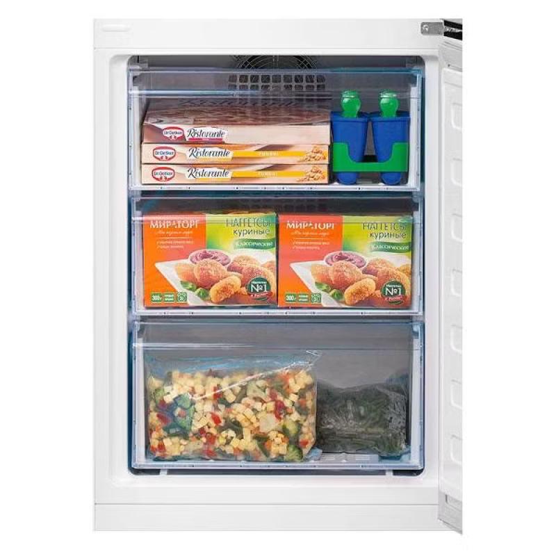 Холодильник Beko B1RCNK272G имеет две камеры с общим объемом 270 литров и системой No Frost. В холодильном отделении расположены три полки из закаленного стекла, две из которых регулируются по высоте, три полки на двери и один ящик для овощей. Морозильная камера включает три пластиковых ящика и обеспечивает мощность замораживания до 5 кг/сутки. Модель оснащена электронным управлением, светодиодным освещением, звуковой сигнализацией открытой двери и повышения температуры. Имеются режимы суперзамораживания, суперохлаждения, быстрого охлаждения и отпуск. При отключении питания поддерживает температуру до 18 часов. Класс энергоэффективности A+, годовое потребление электроэнергии 267 кВтч. Уровень шума составляет 39 дБ. Габариты: высота 171 см, ширина 54 см, глубина 60 см. Вес 55 кг.