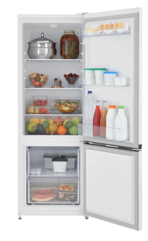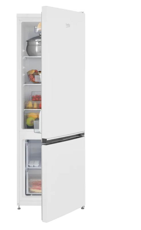Холодильник Beko B1RCSK251W имеет общий объем 250 литров и состоит из двух камер. Холодильное отделение объемом 175 литров оснащено капельной системой размораживания, тремя стеклянными полками, тремя полками на двери, ящиком для овощей и подставкой для яиц. Морозильная камера расположена в нижней части, ее объем составляет 65 литров, есть два пластиковых ящика и контейнер для льда, система размораживания ручная. Управление электронное, оснащен LED-подсветкой, функцией суперзамораживания и технологией MinFrost. Климатический класс SN, используется хладагент R600a. Годовое энергопотребление составляет 301 кВтч, класс энергоэффективности A. Уровень шума не превышает 39 дБ, вес 47 кг. Габариты: высота 158 см, ширина 54 см, глубина 60 см.