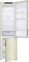 Холодильник LG GA-B509CECL имеет двухкамерную конструкцию с нижним расположением морозильной камеры. Общий объем составляет 419 литров, из которых 292 литра приходится на холодильную камеру и 127 литров на морозильную. В обеих камерах реализована система Total No Frost. Холодильная камера содержит 5 стеклянных полок и зону свежести Fresh Zone, морозильная - 3 ящика с мощностью замораживания 12 кг/сутки. Управление электронное, дисплей внутренний. Температурный диапазон холодильной камеры от 1°C до 7°C, морозильной - от -15°C до -23°C. Имеет инверторный компрессор с хладагентом R600a, класс энергопотребления A+. Годовое потребление энергии 325 кВт*ч, автономное сохранение холода 16 часов. Функции включают DoorCooling+, Express Freeze, суперохлаждение, ледогенератор. Оснащен системой Smart Diagnosis, антибактериальным уплотнителем Bio Shield, индикацией открытой двери и отключения питания. Корпус выполнен из нержавеющей стали с глянцевой поверхностью, защищенной от отпечатков пальцев. Габариты 59.5x203x68.2 см, вес 74 кг.