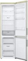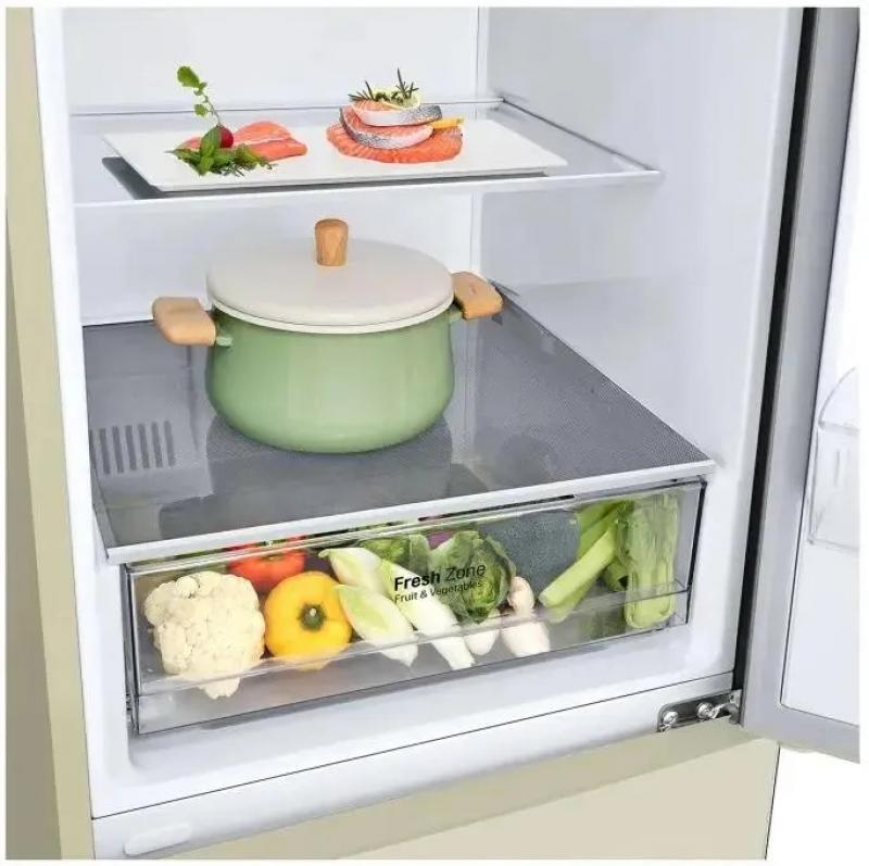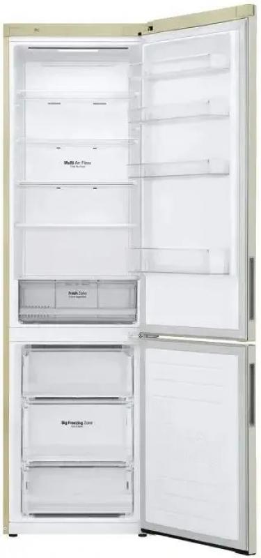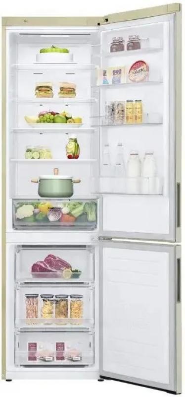 Холодильник LG GA-B509CEWL имеет двухкамерную конструкцию с нижним расположением морозильной камеры. Управление электронное с внешним дисплеем. Общий объем 419 л, полезный 384 л. Холодильная камера содержит 292 л общего и 277 л полезного объема, оборудована системой Total No Frost, пятью стеклянными полками и одним ящиком. Зона свежести Fresh Zone встроена. Морозильное отделение на 127 л общего и 107 л полезного объема имеет три ящика и функцию Express Freeze. Класс энергопотребления A+, годовое потребление 325 кВт*ч. Инверторный компрессор работает на хладагенте R600a. Включает защиту от детей, DoorCooling+, суперохлаждение, индикацию температуры и нештатных ситуаций. Антибактериальный уплотнитель Bio Shield, система Smart Diagnosis. Двери из нержавеющей стали с матовой поверхностью имеют четыре полки. Уровень шума 36 дБ. Габариты 59.5x203x68.2 см, вес 74 кг.