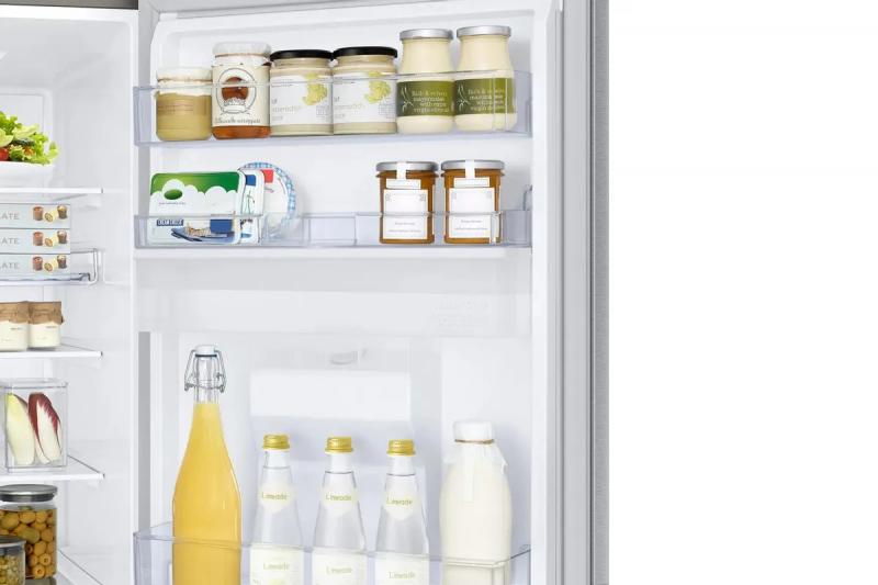 Холодильник двухкамерный SAMSUNG RB34C632ESA/EF — с нижним расположением морозильной камеры. Общий объем — 341 л (холодильная камера — 227 л, морозильная — 114 л). Обе камеры оснащены системой No Frost. Управление — электронное, с внутренним дисплеем. Имеются функции суперохлаждения, суперзаморозки и режима «отпуск». Предусмотрена индикация открытой двери и температуры, LED-подсветка, 4 стеклянные полки и 1 ящик в холодильной камере, 3 ящика в морозильной. Мощность замораживания — 8 кг/сут, автономное хранение — до 9 ч. Энергопотребление — 254 кВт·ч/год, класс энергоэффективности — E. Уровень шума — 35 дБ. Климатические классы: N, SN, ST, T. Дверь открывается вправо. Габариты (Ш×В×Г): 59,5 × 85,3 × 65,8 см. Вес: 64 кг.