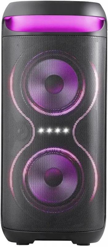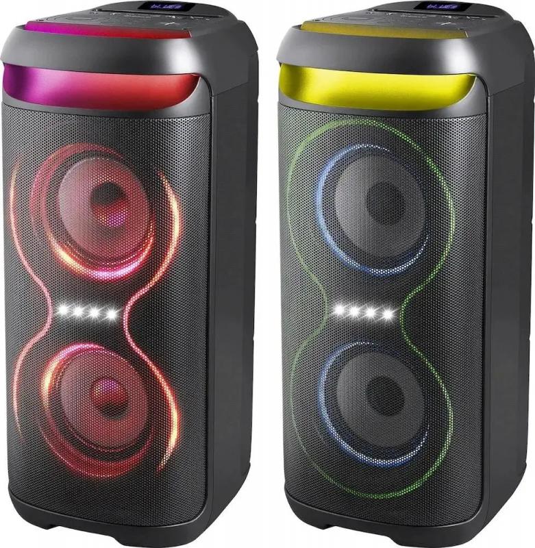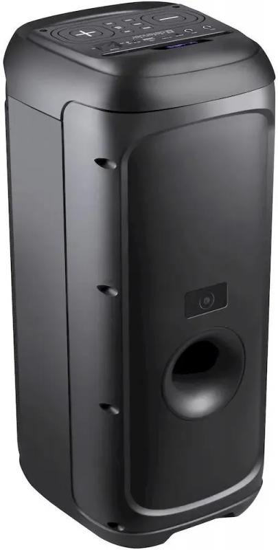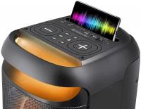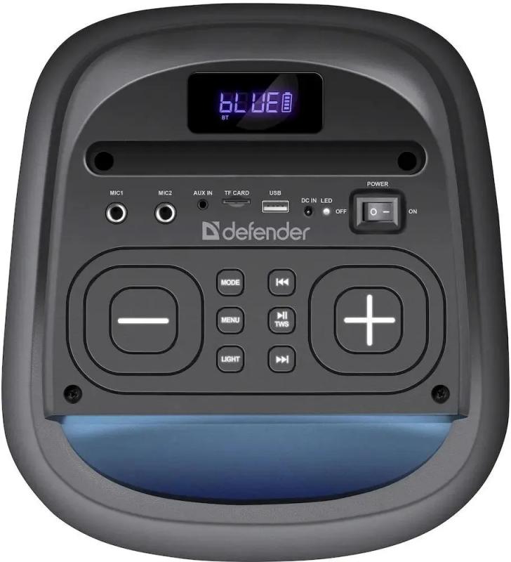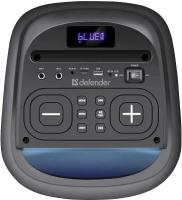 Колонка DEFENDER Explode подключается через Bluetooth версии 5.0 с радиусом действия до 10 метров. Акустическая система типа 2.0 имеет суммарную мощность 60 Вт при частотном диапазоне 90 Гц - 20 кГц и отношении сигнал/шум 75 дБ. Встроенный FM-радиоприемник работает в диапазоне 87.5-108 МГц. На корпусе расположен дисплей, разъем USB, слот для microSD карт памяти и стерео-вход AUX INPUT. Управление осуществляется регуляторами на верхней панели. Подсветка RGB оснащена различными режимами работы. Поддерживает кодеки MP2, MP3, APE, FLAC, WAV, WMA. Возможно одновременное подключение двух колонок. Корпус изготовлен из металла и пластика черного цвета. Питание от сети или встроенного аккумулятора Li-Ion емкостью 3600 mAh, обеспечивающего до 5.5 часов автономной работы при времени зарядки 4 часа. Размеры устройства 285 x 615 x 265 мм, вес 6130 грамм.