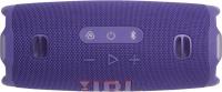 Колонка JBL Charge 6 работает через беспроводное подключение Bluetooth версии 5.4 с поддержкой стандартов A2DP 1.4 и AVRCP 1.6. Радиус действия беспроводного соединения достигает 10 метров. Устройство имеет акустический тип 1.0 и суммарную мощность 45 Вт. Частотный диапазон составляет 56 Гц - 20 кГц, отношение сигнал/шум равно 80 дБ. Питание осуществляется от встроенного аккумулятора Li-Ion емкостью 7500 mAh, обеспечивающего до 28 часов автономной работы при времени зарядки 3 часа. Корпус изготовлен из пластика с защитой IP68 от пыли и воды. Управление расположено на боковой панели. Цвет корпуса пурпурный. Размеры колонки составляют 228.8 x 98.5 x 94 мм, вес равен 960 грамм.