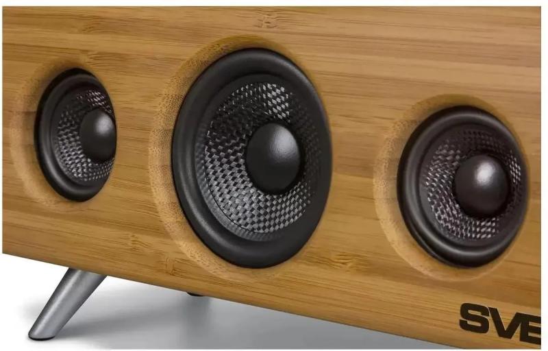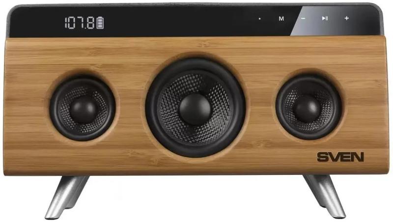 Компактная акустическая система SVEN АС HA-930 поддерживает проводное и беспроводное подключение через интерфейсы Bluetooth, 3.5 мм Jack и USB. Модель имеет акустический тип 1.0 с суммарной звуковой мощностью 30 Вт и частотным диапазоном 80 Гц - 20 кГц. Встроенный радиоприемник позволяет прослушивать FM-станции, а наличие дисплея обеспечивает удобное управление функциями. На передней панели расположены регуляторы, есть один разъем USB и стерео-вход AUX INPUT. Питание осуществляется от USB или встроенного аккумулятора Li-Ion емкостью 2200 мА·ч, что обеспечивает автономную работу. Корпус выполнен в цвете дерева. Размеры устройства составляют 260 х 150 х 112 мм, вес 1.75 кг.