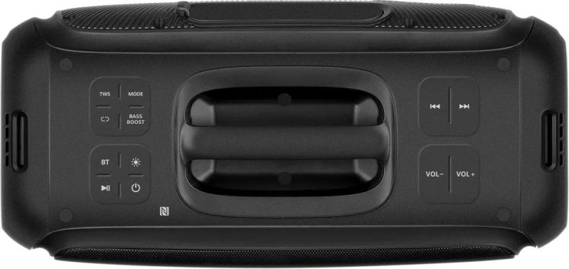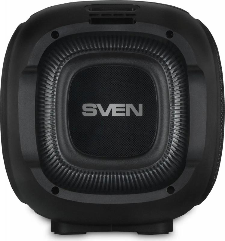 Колонка SVEN PS-860 работает от встроенного аккумулятора Li-Ion емкостью 5400 mAh и подключается через Bluetooth, 3.5 мм Jack или AUX INPUT. Имеет суммарную мощность 100 Вт с частотным диапазоном 40 Гц - 20 кГц. Комплектуется одним ВЧ динамиком размером 58 мм и одним НЧ динамиком размером 134 мм. Встроенный FM-радиоприемник работает в диапазоне 87.5-108 МГц. Поддерживает карты памяти USB и microSD. Оснащена RGB подсветкой и функцией одновременного подключения двух колонок. Регуляторы находятся на верхней панели. Корпус изготовлен из пластика черного цвета. В комплект входят сигнальный кабель mini-jack, кабель питания USB-C, пульт ДУ с батарейками ААА, ремень для переноски, инструкция и гарантийный талон. Размеры устройства 502 x 235 x 226 мм, вес 5700 грамм.