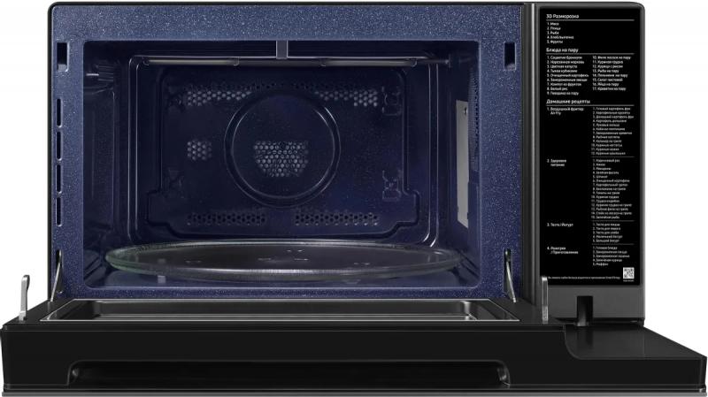 Микроволновая печь SAMSUNG MC32DB7746KCBW имеет объем 32 литра и оснащена электронным управлением с дисплеем и часами. Мощность микроволн составляет 900 Вт, гриля - 1500 Вт. Тэновый гриль работает в комбинации с микроволнами. Печь предлагает 7 уровней мощности и 4 автоматические программы: разморозка, разогрев, приготовление и конвекция. Есть функция быстрого старта и кнопка +30 секунд. Внутренняя камера покрыта керамической эмалью, диаметр поворотного стола 345 мм. В комплект входит решетка для гриля. Цвет корпуса антрацит. Размеры (ШхВхГ): внешние 52.3 х 33 х 51.5 см, внутренние 37.3 х 23.3 х 36.3 см. Вес 20.4 кг.