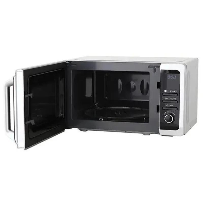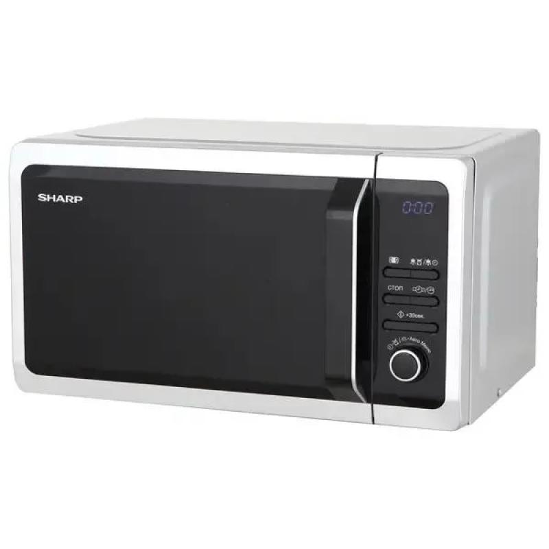 Микроволновая печь SHARP R-2852RSL имеет объем 20 литров и мощность 800 Вт. Управление комбинированное, дверца открывается с помощью ручки. На корпусе расположен дисплей, присутствует звуковой сигнал окончания приготовления. Предусмотрено 5 уровней регулировки мощности. Внутренняя камера покрыта жаропрочной эмалью, диаметр поворотного стола составляет 255 мм. Модель включает 10 программ, есть режимы автоматической разморозки и автоматического приготовления. Имеется функция блокировки от детей. Таймер отключения настраивается до 95 минут. Цвет корпуса серебристый с черным. Габариты устройства 43.95х25.82х34 см, вес 11.5 кг.