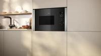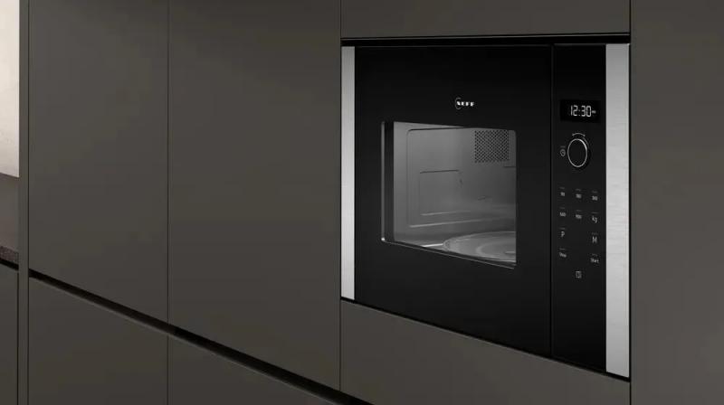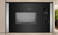 Микроволновая печь NEFF HLAWD53N1F выполнена в черном цвете с ретродизайном. Имеет объем 25 литров и потребляемую мощность 1450 Вт. Выходная мощность микроволн составляет 900 Вт, предусмотрено 5 уровней мощности. Внутренние стенки изготовлены из нержавеющей стали, дверца распашного типа открывается кнопкой. Управление электронное, оснащена светодиодным экраном и блокировкой от детей. Есть часы, отложенный старт и функция быстрого старта. Предусмотрено 7 автоматических программ приготовления, автоматическое размораживание, поэтапное приготовление, поддержание тепла и удаление запахов. Возможно сохранение пользовательских программ. Поворотный стол останавливается, его диаметр 315 мм. Габариты модели: ширина 59.4 см, глубина 36.9 см, высота 38.2 см. Вес 19 кг. Размеры ниши для встраивания: высота 38 см, ширина 56 см, глубина 55 см.