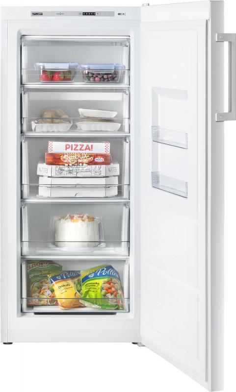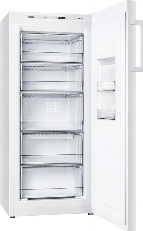 Морозильная камера АТЛАНТ М-7601-100 обладает полезным объемом 173 литра и общим объемом 192 литра. Устройство поддерживает температуру в диапазоне от -16°C до -24°C и способно замораживать до 18 кг продуктов в сутки. Модель имеет один компрессор и использует хладагент R600a. Энергопотребление составляет 232 кВт*ч/год, что соответствует классу энергоэффективности A+. Система размораживания ручная. Управление электронное, присутствует функция суперзаморозки. При отключении электричества способна сохранять холод до 25 часов. Корпус выполнен из металла белого цвета, двери оснащены емкостями Slim Space. Индикация включает звуковой сигнал незакрытой двери и индикатор температуры. Внутреннее освещение и антибактериальное покрытие предусмотрены. Конструкция однокамерная с пятью ящиками и одной дверью, которая перевешивается. Уровень шума достигает 39 дБ. Габариты составляют 59.5х138х62.9 см, вес 53 кг.