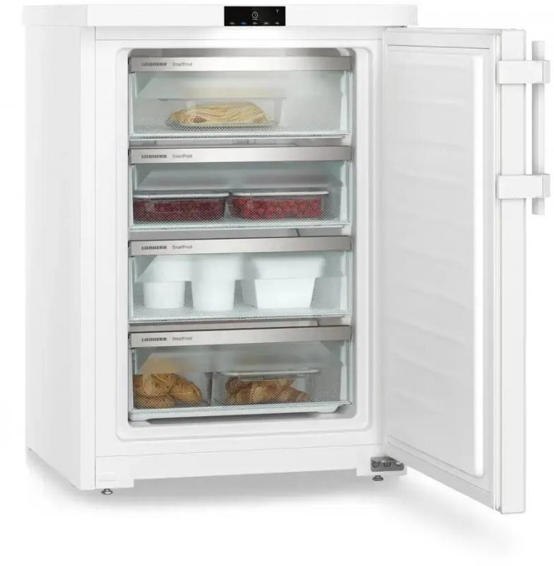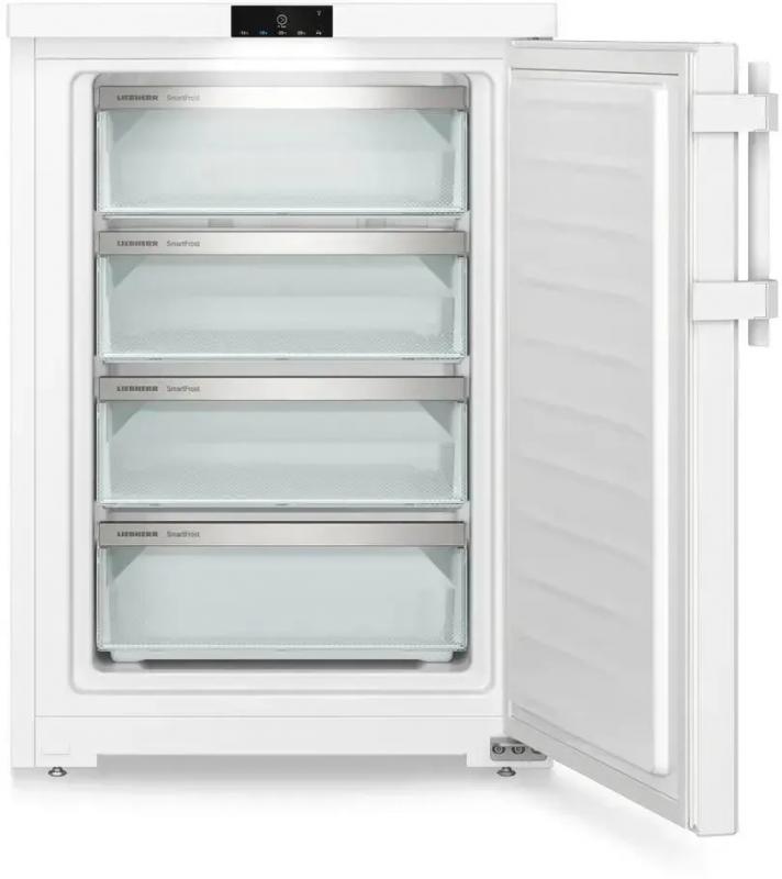 Морозильный шкаф LIEBHERR Fdi 1624 имеет класс энергопотребления A+ по европейской классификации и F по международной. Объем морозильной камеры составляет 106 литров, температурный режим варьируется от -28°C до -16°C. Управление электронное с внешним дисплеем. Используется хладагент R600a, система размораживания ручная с технологией Smart Frost. Уровень шума 38 дБ, автономное сохранение холода при отключении электроэнергии достигает 14 часов. Корпус выполнен из металла белого цвета с одной дверью и четырьмя ящиками. Дверь оснащена системой перевешивания. Модель подходит для работы в неотапливаемых помещениях при климатических классах N, SN, ST, T. Оснащен функциями защиты от детей и суперзаморозки. Индикация включает звуковой сигнал незакрытой двери, индикаторы работы и температуры. Внутреннее освещение присутствует. Габариты 60х85х60.7 см.