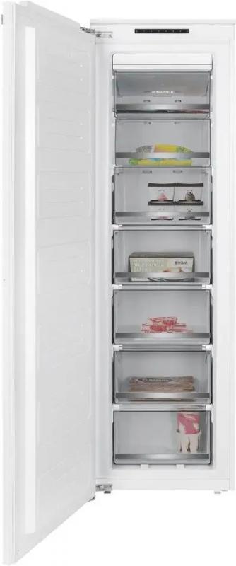 Морозильный шкаф MAUNFELD MBFR177NFWGR Inverter с системой No Frost и классом энергопотребления A+ оснащен инверторным компрессором и электронным управлением. Общий объем составляет 203 литра, из которых 200 литров полезного пространства. Устройство способно замораживать до 9 кг продуктов в сутки при температуре от -11°C до -21°C. Модель имеет один компрессор и потребляет 348 кВт*ч в год. В конструкции предусмотрены внешний дисплей, два уровня полок и пять ящиков. Дверь перевешивается, присутствует индикация работы и температуры, внутреннее освещение. Хладагент R600a обеспечивает эффективную работу. Габариты устройства 54x177.5x54.5 см, вес 57.22 кг. Размеры ниши для встраивания 56.2x177.1x55 см.
