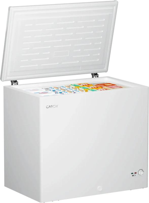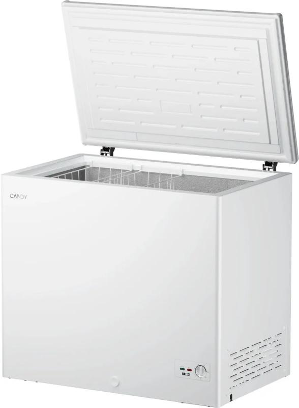 Морозильная камера CANDY CCM251R с полезным объемом 251 литр работает на хладагенте R600a и имеет механическое управление. Прибор оснащен одним компрессором и потребляет 323 кВт*ч в год, относится к классу энергопотребления A. Система размораживания ручная, мощность замораживания составляет 17 кг/сутки. Устройство работает в климатических классах N, SN, ST, T, поддерживая температуру от -32°C до -10°C. Морозильник имеет одну дверь с открыванием вверх и одну камеру с одной корзиной внутри. Индикация работы выполнена в виде светового индикатора. Корпус изготовлен из металла белого цвета. Габариты составляют 94х84.5х62 см, вес 36 кг.