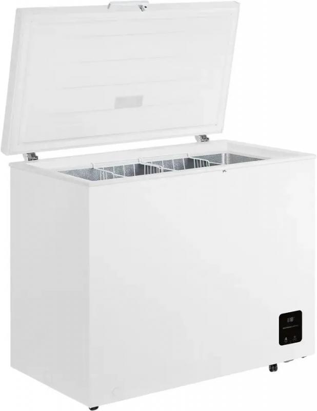 Морозильная камера GORENJE FHC30A6W с общим объемом 297 литров работает в климатических классах N, SN, ST, T. Минимальная температура достигает -24 °C, система размораживания ручная. Мощность замораживания составляет 15 кг/сутки, время хранения при отключении питания 42 часа. Оснащена одним компрессором, используется хладагент R600a. Уровень шума 42 дБ, управление электронное. Дверца открывается вверх, имеется одна дверь и одна камера с двумя корзинами. Класс энергопотребления A, годовое потребление энергии 356 кВт*ч, потребляемая мощность 140 Вт. Есть внутреннее освещение, колеса для перемещения, функция суперзаморозки, индикация работы и температуры, а также замок. Цвет белый. Размеры (ШхВхГ): 111.4 х 84.7 х 63 см, вес 37 кг.