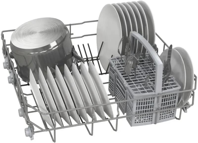 Полноразмерная посудомоечная машина BOSCH SMS4IKI51Q с конденсационной системой сушки оснащена электронным управлением и черной панелью управления с дисплеем. Вмещает 13 комплектов посуды, имеет две корзины, включая регулируемую по высоте. Предусмотрено пять программ мойки: экономичная, интенсивная при 70°, экспресс-программа, быстрое мытье при 45°C, персональная программа. Оборудована функциями защиты от протечек частичного типа, защиты от детей, таймером отсрочки запуска до 24 часов с минимальным интервалом 1 час. Индикация включает звуковой сигнал, индикаторы наличия ополаскивателя и соли. Поддерживает использование средств 3 в 1, оснащена проточным водонагревателем. Мощность потребления составляет 2400 Вт, работает от сети 220-240 В при частоте 50 Гц. Цвет корпуса серебристый. Размеры (ШхВхГ) составляют 60х84.5х60 см, глубина с открытой дверью 115.5 см, вес 45.1 кг.