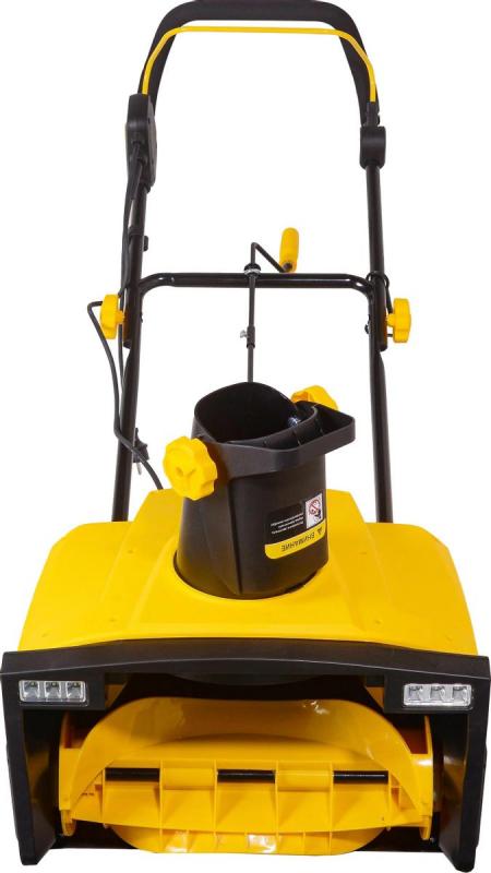 Снегоуборщик HUTER SGC 2500EL с электрическим двигателем мощностью 2500 Вт, питание от сети 220 В. Одноступенчатый шнек выполнен из пластика. Ширина ковша 50 см. Высота захвата 30 см. Дальность выброса снега до 7 м. Устройство не является самоходным. Регулировка положения желоба — рычагом, угол поворота 180 градусов. Оснащен LED-фарой. Подогрев ручек отсутствует. Рукоятка разборная, с накладкой для удобства. Вес: 14 кг.