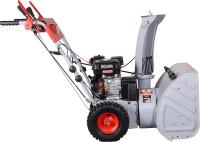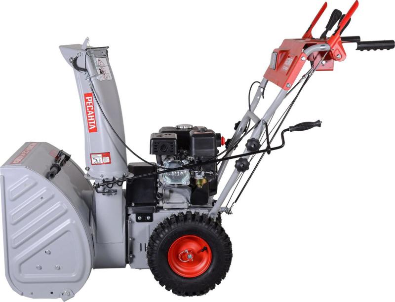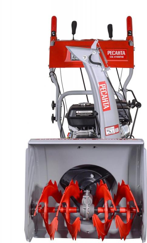Самовывоз сегодня. Снегоуборщик РЕСАНТА СБ 4100ПФ с бензиновым четырехтактным двигателем объемом 163 см³ и мощностью 7 л.с. (5150 Вт), оснащённым верхним расположением клапанов и зимним воздушным фильтром. Двухступенчатая система шнеков выполнена из металла, диаметр шнека 30 см. Ширина ковша 56 см. Высота захвата 54 см. Дальность выброса снега до 15 м. Устройство самоходное с 6 скоростями вперед и 2 назад. Запуск — ручным стартером. Объем топливного бака 3.6 л. Регулировка направления и высоты выброса осуществляется рычагом, угол поворота желоба — 180 градусов. Оснащен яркой фарой для работы в темное время суток. Подогрев ручек отсутствует. Колеса размером 33×10 см с выраженным зимним протектором обеспечивают надежное сцепление. Имеются ограничительные башмаки для защиты ковша. Вес: 72 кг.