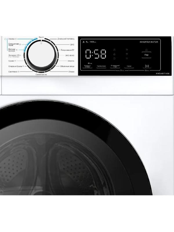 Стирально-сушильная машина Korting KWD 48IT1496 имеет отдельностоящее исполнение с петлями люка справа. Максимальная загрузка для стирки составляет 8 кг, для сушки - 6 кг. Скорость отжима достигает 1400 об/мин. Классы эффективности: энергопотребления A, стирки A, отжима B. Включает 15 программ, среди которых хлопок, синтетика, шерсть, экспресс-стирка и другие. Есть функции предварительной стирки, интенсивной стирки, удаления пятен, дополнительного полоскания, легкой глажки и обработки паром. Расход электроэнергии за цикл стирки - 0.47 кВт·ч, для стирки+сушки - 3.1 кВт·ч. Уровень шума при стирке 56 дБ, при отжиме 78 дБ, при сушке 62 дБ. Электронное управление с цифровой индикацией, таймер отложенного старта на 24 часа и блокировка от детей. Габариты: ширина 59.5 см, глубина 47.5 см, высота 85 см. Вес 63 кг.
