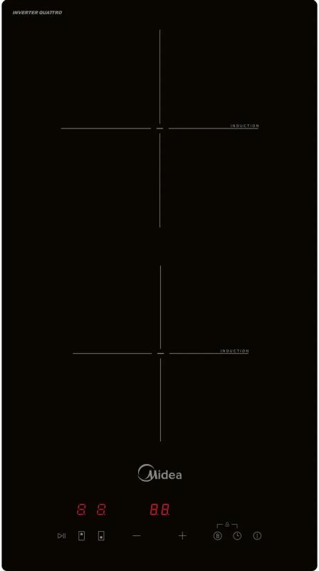 Варочная панель MIDEA MIH32103 выполнена в формате ДОМИНО с независимой установкой. Имеет две индукционные конфорки с функцией Booster для увеличения мощности нагрева. Передняя конфорка мощностью 1.3/1.5 кВт и диаметром 160 мм, задняя - 1.8/2 кВт и 180 мм. Панель управления расположена спереди, сенсорного типа с электронным таймером и автоматическим отключением. Дисплей отображает время приготовления, выбранную мощность и уровень остаточного тепла. Встроенные системы безопасности включают блокировку управления, защитное отключение, распознавание посуды и отключение при проливе жидкости. Панель подключается к сети через кабель без вилки длиной 1.8 м, работает от 220-240 В при частоте 50-60 Гц. Мощность подключения составляет 3.5 кВт. Минимальная толщина столешницы для монтажа 30 мм. Размеры для встраивания 268х500 мм. Габариты прибора 288х520х56 мм, вес 4.38 кг.