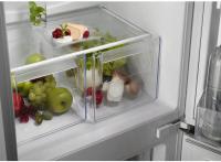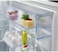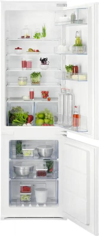 Холодильник AEG OSC6N181ES полновстраиваемый с дверью открыванием вправо и возможностью перевешивания. Имеет класс энергопотребления E по европейской классификации. Включает две камеры общей вместимостью 257 литров. Морозильная камера расположена снизу объемом 62 литра с системой No Frost и тремя ящиками. Холодильное отделение на 195 литров оснащено капельной системой размораживания Frost Free с пятью стеклянными полками и двумя ящиками. Годовое потребление энергии составляет 216 кВт*ч. Уровень шума не превышает 35 дБ. Электронное управление. Работает на хладагенте R600a при напряжении 220-240 В и частоте 50 Гц. Оснащен LED подсветкой. Климатические классы N, SN, ST, T. Цвет белый. Размеры (ШхВхГ): 54.6 х 177.2 х 54.9 см. Вес 57 кг. Требуемая ниша: ширина 56 см глубина 56 см.