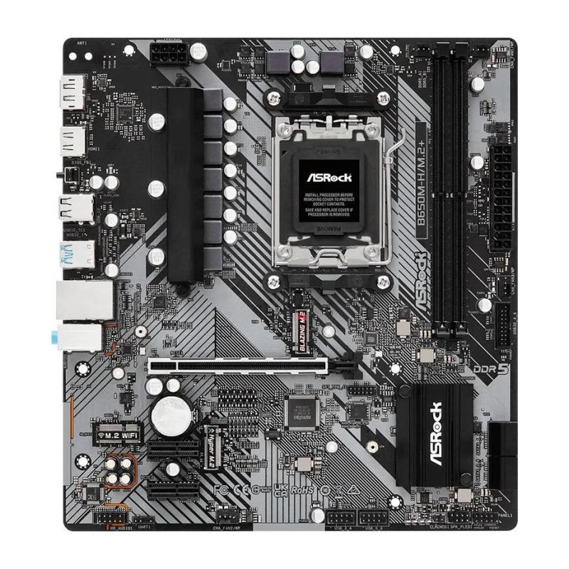 Описание для Материнская плата ASROCK B650M-H/M.2+, AM5, B650, 2*DDR5, 4*SATA, 2*M.2, 3*USB 3.2, 2*USB 2.0, Type-C, 1*PCIx16, 2*PCIx1, 1xM.2 (Key E), HDMI+DP, mATX [B650M-H/M.2+]