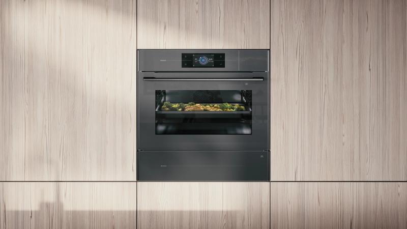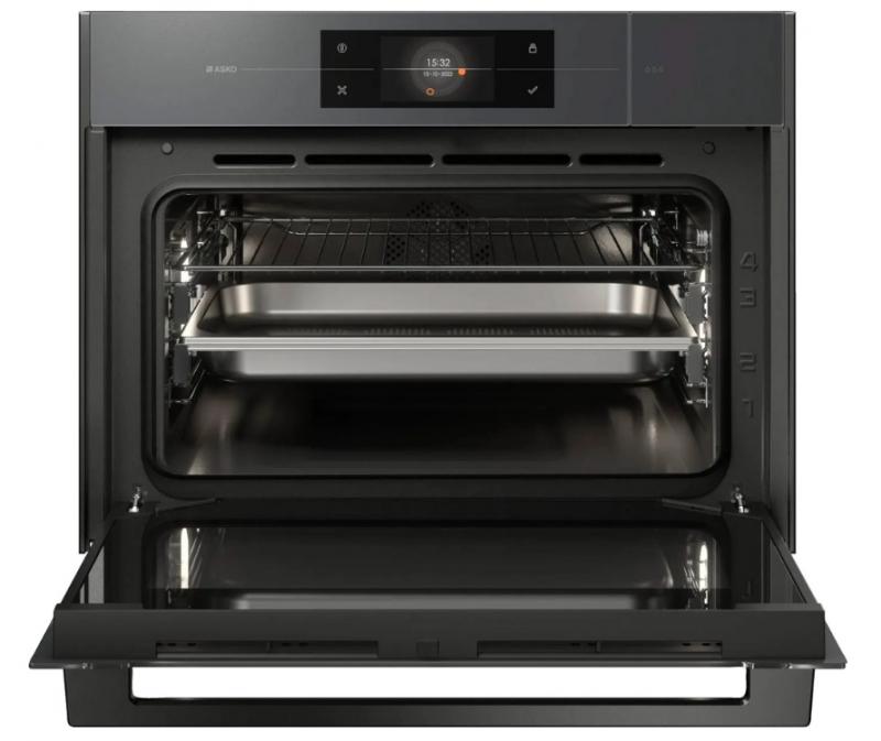 Духовой шкаф электрический ASKO OCS8478GG, компактный. Мощность и максимальная температура нагрева составляют 230 градусов. Оснащен полноцветным сенсорным TFT-дисплеем и 132 автоматическими программами. Включает 11 режимов нагрева включая ProRoast и Су-вид. Имеется функция приготовления на пару и галогеновое освещение. Дверца содержит 4 стекла с плавным открыванием и закрыванием. Очистка выполняется паром, предусмотрены телескопические направляющие на двух уровнях и термощуп. Цвет жемчужно-серый. Класс энергоэффективности A+. Ширина 59.8см глубина 56.8см высота 45.6см. Вес 40кг.
