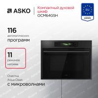 Духовой шкаф Asko OCM64GSH электрический, с СВЧ. Мощность 1 кВт, максимальная температура нагрева 250°С. Количество программ 11, включая автоматические и комбинированные режимы с микроволнами. Оснащен TFT-дисплеем, таймером, функцией AquaClean и системой Microwave CoolDoor. В комплект входят стеклянный противень, решетка и эмалированный противень. Цвет графит. Класс энергоэффективности A. Размеры 45х59.7х56.4см, вес 34.8кг.