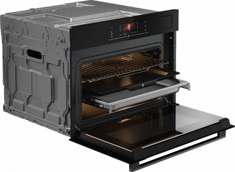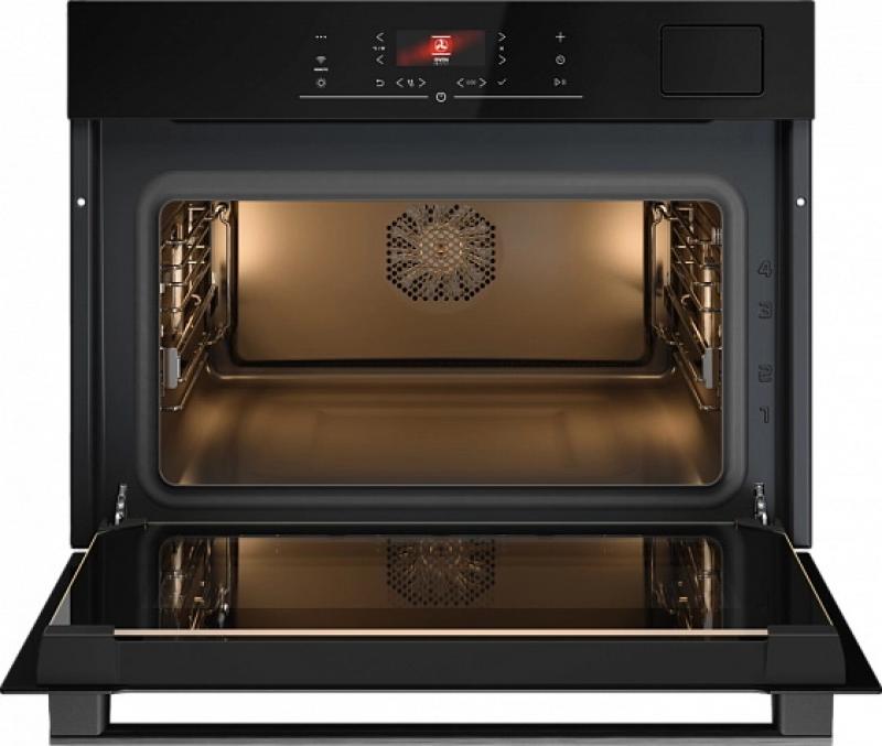 Духовой шкаф ASKO OCS24BGH электрический, компактный. Управление сенсорное, оснащен TFT дисплеем и 14 режимами нагрева. Имеет функцию приготовления на пару и AirFry, плавное открывание дверцы и термозонд. Мощность позволяет достигать температуры от 30 до 250 градусов. Освещение галогеновое, очистка паром, поддержка Wi-Fi. Цвет черное стекло. Внутренняя отделка выполнена из эмалированной стали. Класс энергоэффективности A++. Ширина 59см глубина 56см высота 45см. Вес 35кг.