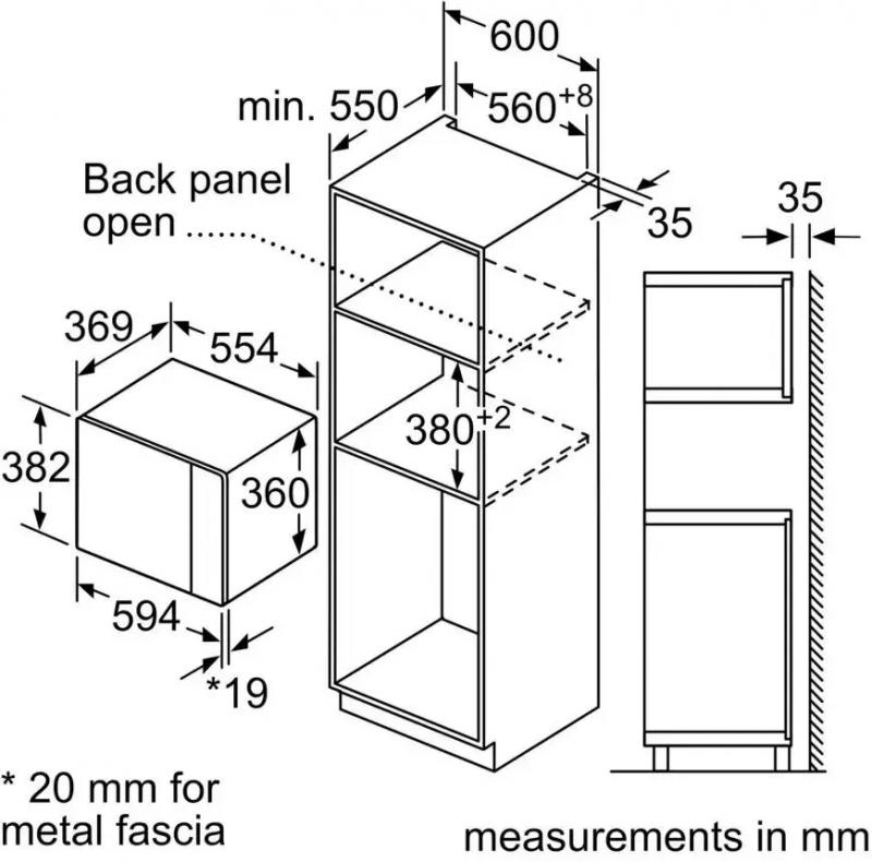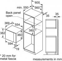 Встраиваемая микроволновая печь BOSCH BEL554MW2 — с сенсорным управлением на английском языке, оснащённая кнопкой +30 секунд и пятью ступенями регулировки мощности. Мощность микроволн составляет 900 Вт, кварцевого гриля — 1000 Вт. Устройство имеет 8 программ, включая автоматическую разморозку, размораживание по весу и комбинированный режим микроволны с грилем. Дверца открывается кнопкой справа налево, внутреннее покрытие камеры — эмаль, диаметр поворотного стола — 315 мм. Корпус белого цвета с дисплеем и внутренним освещением, в комплекте решётка для гриля. Габариты: 59,4 × 38,2 × 38,8 см, вес: 18,3 кг.