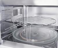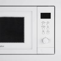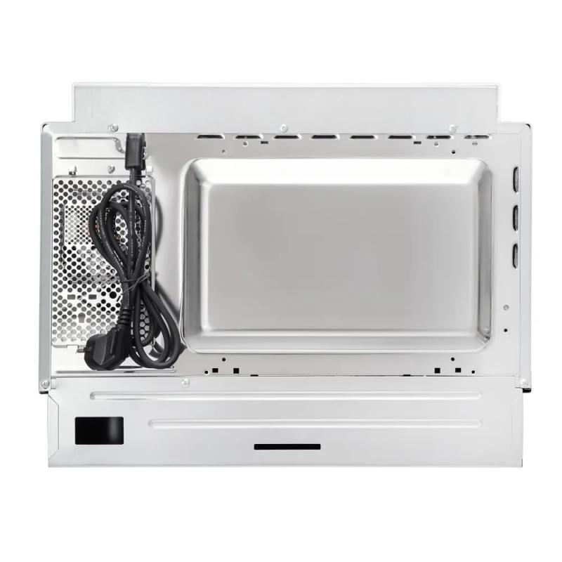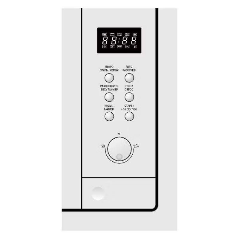 Микроволновая печь EVELUX MW 25 W имеет объем 25 литров и оснащена электронным управлением с русскоязычной панелью. Мощность микроволн составляет 900 Вт, гриля - 1000 Вт. Предусмотрено 5 уровней регулировки мощности и 8 автоматических программ приготовления. Внутренняя камера выполнена из нержавеющей стали, диаметр поворотного стола 315 мм. Доступны режимы автоматической разморозки, разогрева, приготовления, а также комбинированный режим микроволн+гриль. Имеется кварцевый гриль, дисплей, таймер на 95 минут и блокировка от детей. Дверца открывается кнопкой справа налево. В комплект входит решетка для гриля. Цвет корпуса белый. Габариты прибора 59.5х46х40 см, размеры ниши для встраивания 56х45х50 см, вес 18.5 кг.