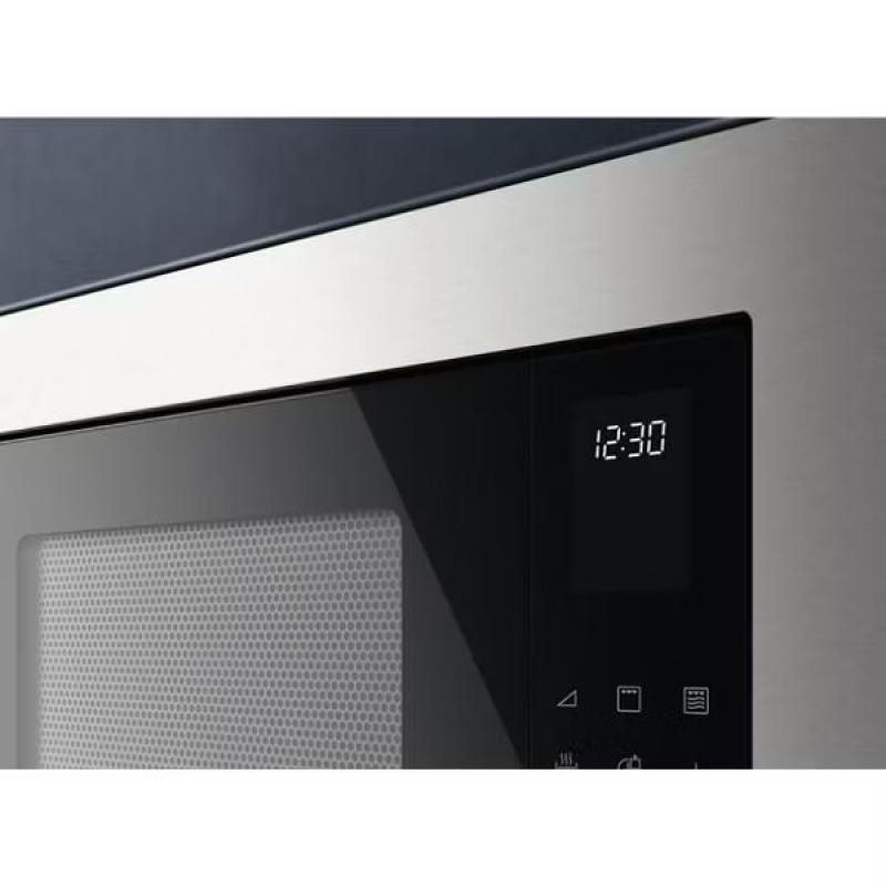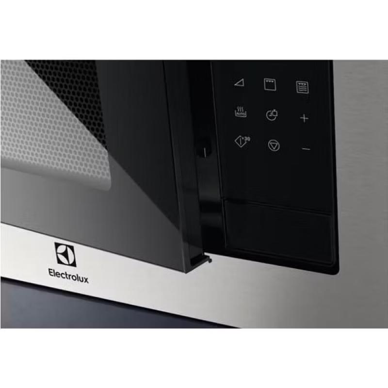 Встраиваемая микроволновая печьELECTROLUX EMS4253TEX имеет объем 25 литров и мощность микроволн 900 Вт. Управление сенсорное, дверца открывается кнопкой справа налево. Камера из нержавеющей стали оснащена поворотным столом диаметром 270 мм. Модель включает режимы автоматической разморозки и гриль с дополнительной комбинированной функцией микроволны+гриль. Тэновый гриль имеет мощность 1000 Вт. На корпусе расположен дисплей. Цвет серебристый с черными элементами. Длина кабеля питания составляет 1 метр. Размеры печи 59.5х38.8х37.7 см, размеры ниши для встраивания 56х38х55 см. Вес устройства 15.7 кг.
