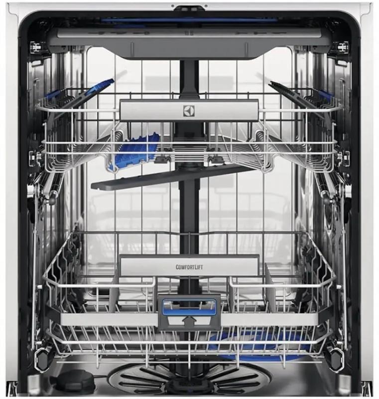 Полноразмерная встраиваемая посудомоечная машина Electrolux EEC67310L с загрузкой 14 комплектов. Оснащена электронным управлением, дисплеем и тремя корзинами, одна из которых регулируется по высоте. Включает 8 программ мойки, в том числе стандартную и экспресс. Обеспечивает классы мойки A, сушки A и энергопотребления D. Система безопасности включает защиту от протечек. Возможна отсрочка запуска до 24 часов. Индикация включает сигналы о наличии соли и ополаскивателя, звуковое оповещение и луч на полу. Максимальный уровень шума 44 дБ, расход воды 11 л. Габариты (ШхВхГ) 59.6 x 81.8 x 55 см, вес 41.6 кг. Длина подводящего и отводящего шлангов 180 см.