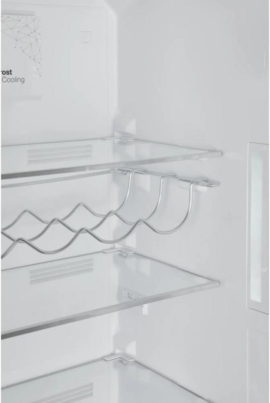 Холодильная камера обладает объемом 170 литров. В ней установлены 4 полки из закаленного стекла и предусмотрено такое же количество полок на дверце. Температурный режим можно регулировать в диапазоне от 2 до 8 градусов Цельсия. Камера оборудована системой Total No Frost, исключающей необходимость ручного размораживания. Дополнительно предусмотрен один ящик и решетка для винных бутылок, способная вместить до 4 бутылок.