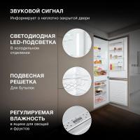 Морозильная камера имеет объем 63 литра и оснащена технологией Total No Frost. Температура может быть установлена в пределах от -16 до -24 градусов Цельсия. Конструкция включает одну полку и два ящика. Мощность замораживания составляет 3.3 кг в сутки, а при отключении электропитания продукты сохранят свежесть до 8 часов.