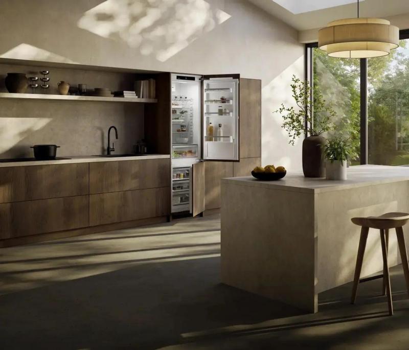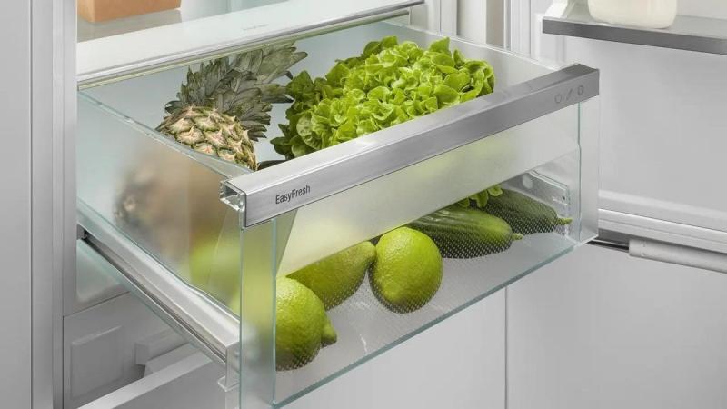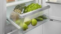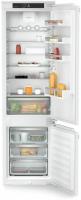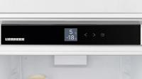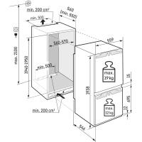 Встраиваемый холодильник Liebherr ICNd 5603 Pure NoFrost имеет нижнее расположение морозильной камеры и оснащен системой No Frost в морозильном отделении. Управление сенсорное с ЖК-дисплеем расположен внутри. Полезный объем составляет 285 л, из них 215 л приходится на холодильную камеру и 70 л на морозильную. В холодильном отделении установлено 5 стеклянных полок и 4 пластиковых дверных балкона, предусмотрен ящик для овощей и фруктов. Морозильная камера содержит 3 отделения и имеет мощность замораживания 6 кг/сутки. Среди функций доступны суперзаморозка, суперохлаждение, ECO режим, режим отпуска, блокировка от детей и сигнал открытой двери. Антибактериальный фильтр обеспечивает защиту от микробов. Климатический класс SN/N/ST/T позволяет эксплуатацию в разных условиях. Годовой расход электроэнергии составляет 180 кВт·ч, уровень шума 33 дБ. Двери перенавешиваемые, крепление мебельного фасада жесткое. Размеры ниши для встраивания: высота 194-195 см, ширина 56 (57) см, глубина 55 см. Габариты прибора: высота 193.8 см, ширина 55.9 см, глубина 54.6 см, вес 64.3 кг.